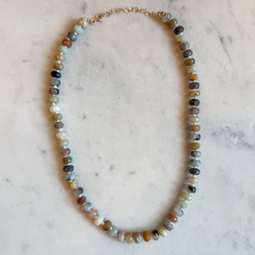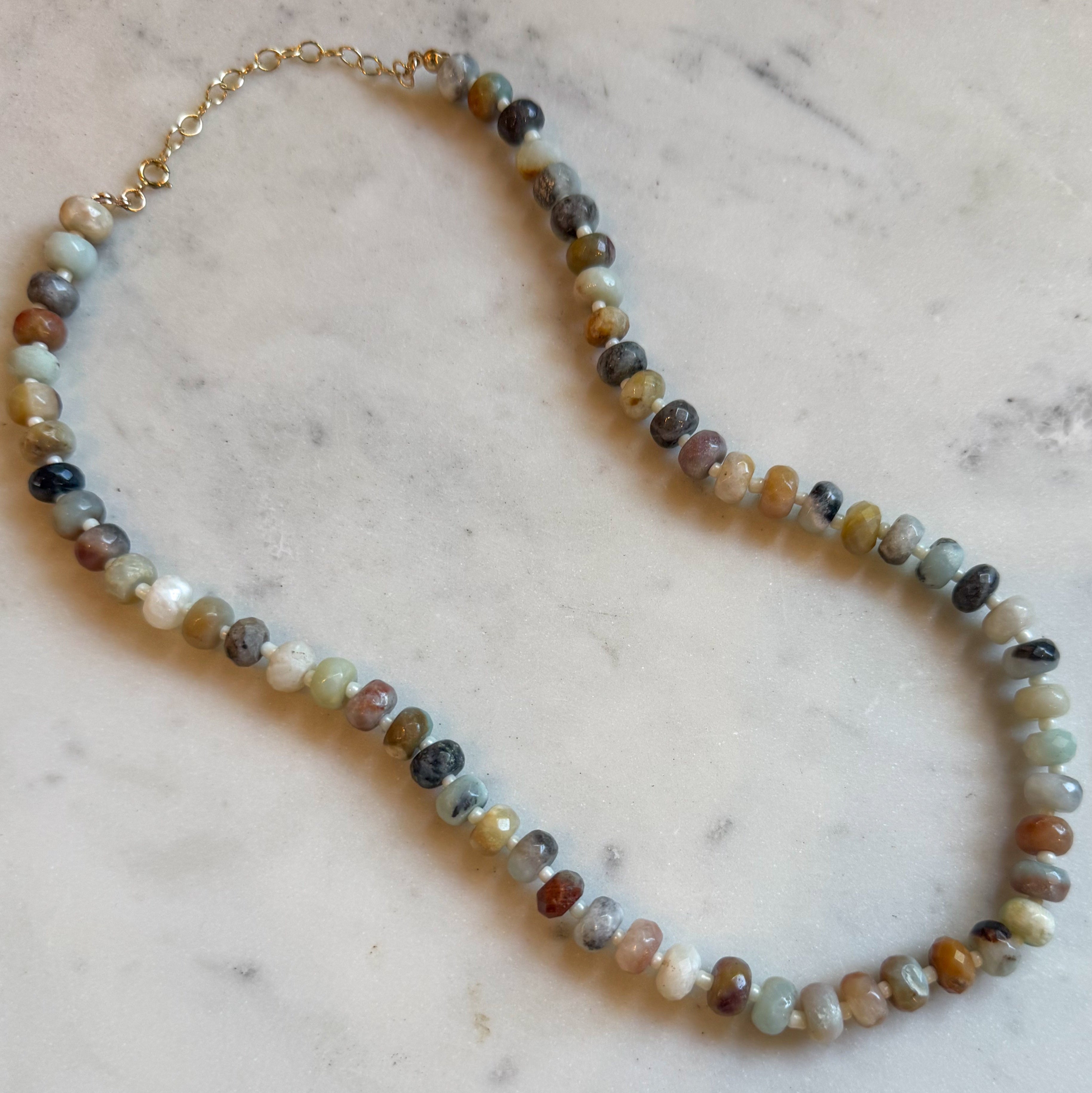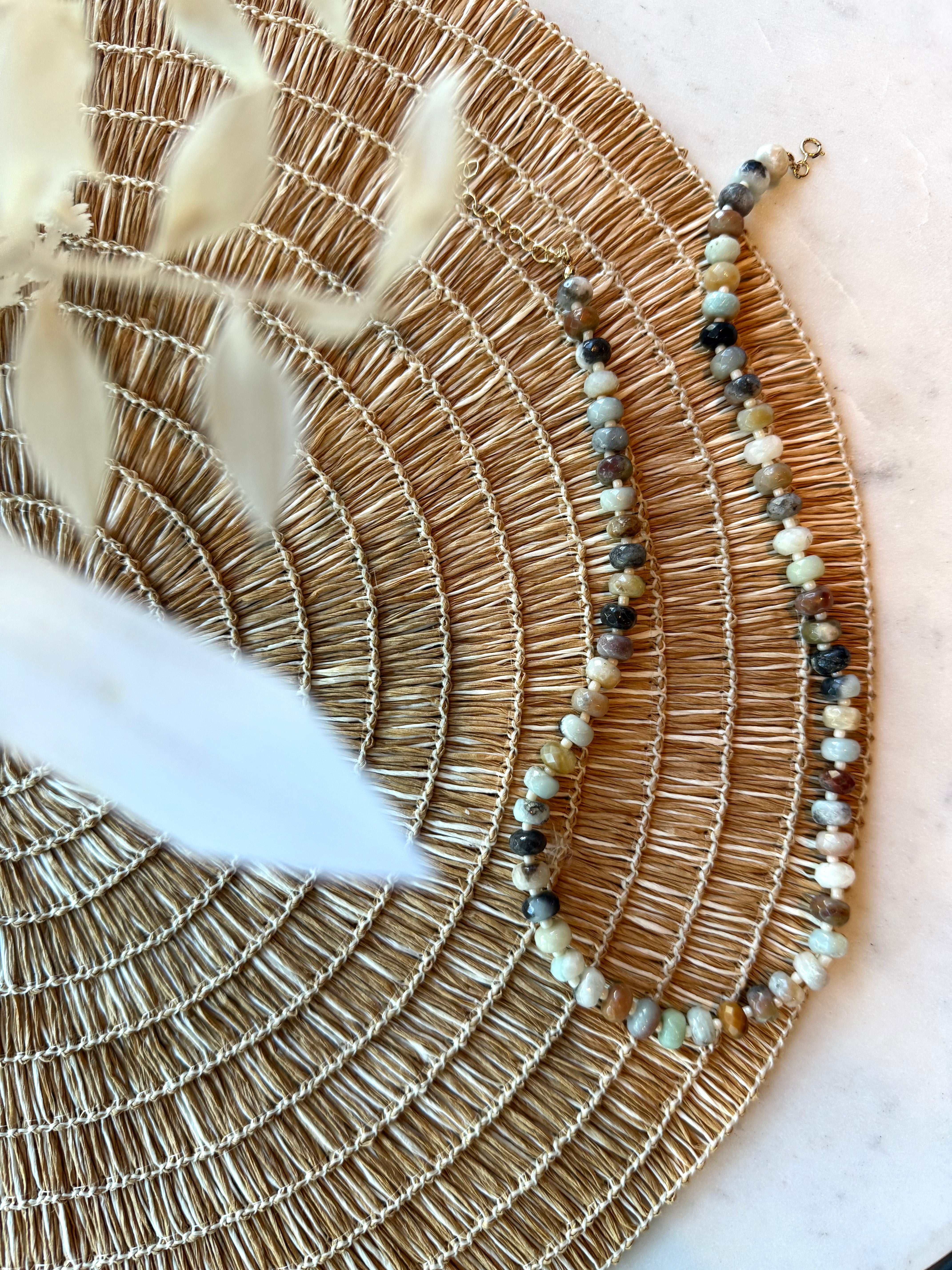 Gem + Mini Bead Necklace: Seagrass
